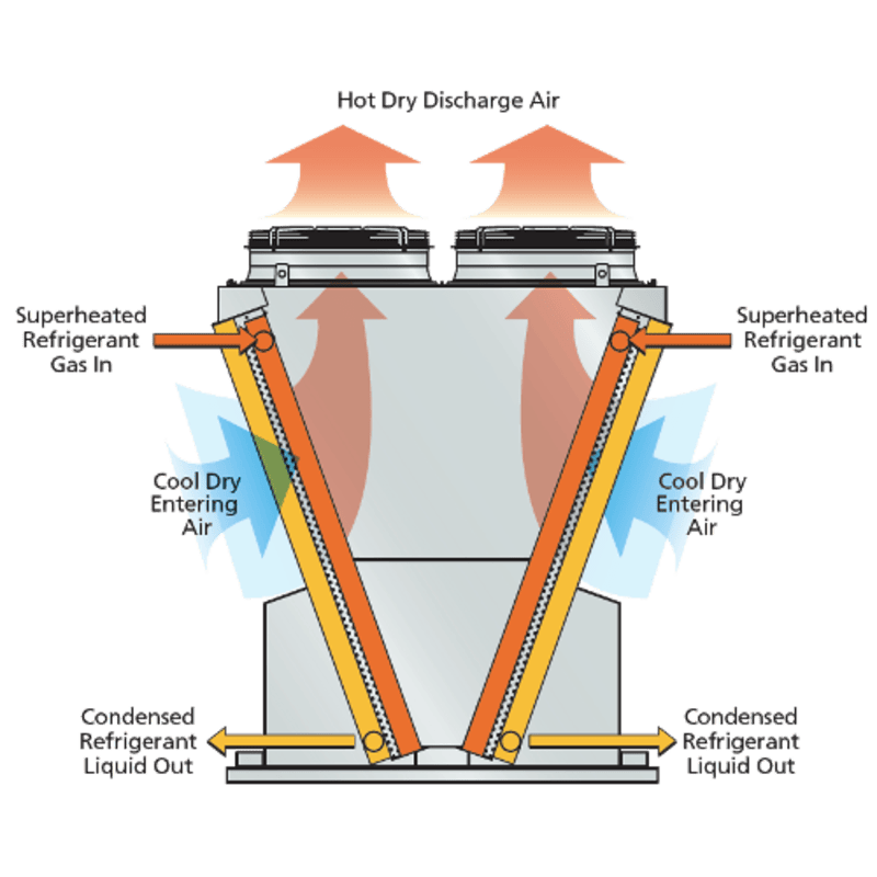- Transfers heat from the process fluid (e.g., water, oil, or other industrial liquids) to the air without direct contact or evaporation.
