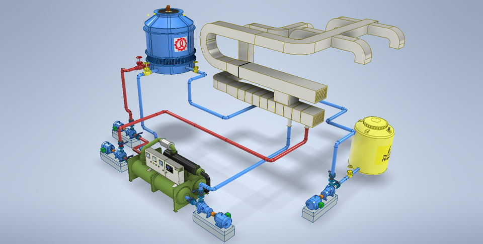 - Chilled water pumps circulate chilled water throughout the building.